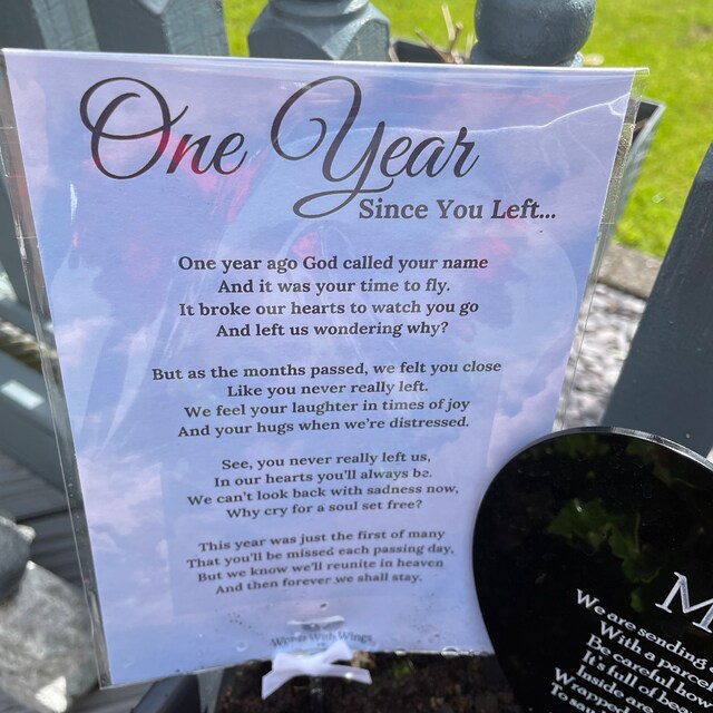One Year Since You Left Grave Card Memorial Card Etsy Hong Kong