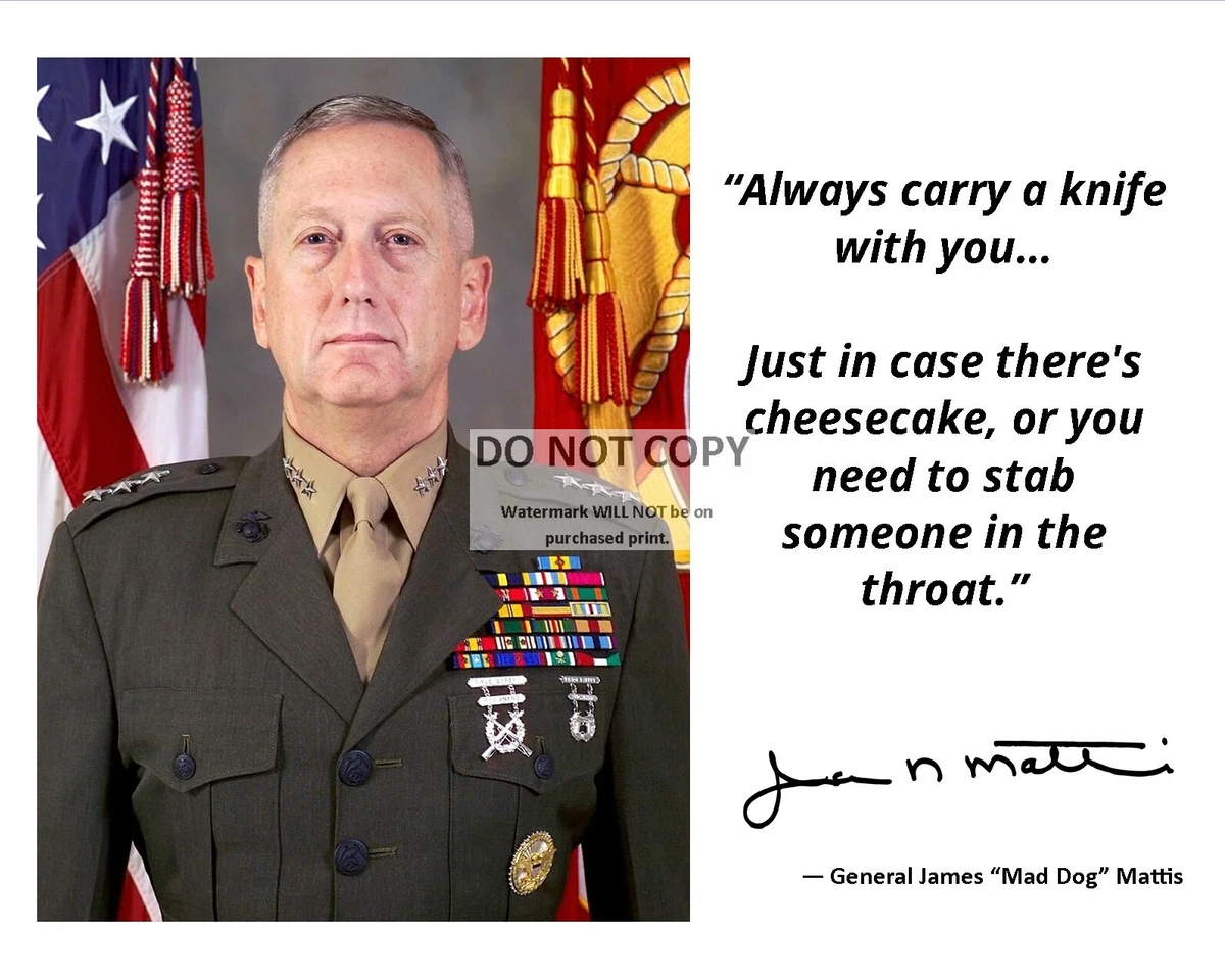 GENERAL JAMES “MAD DOG” MATTIS QUOTE w/ FACSIMILE AUTOGRAPH โ 8X10