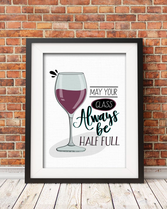 May Your Glass Always Be Half Full, Bar Art, Wine Illustration