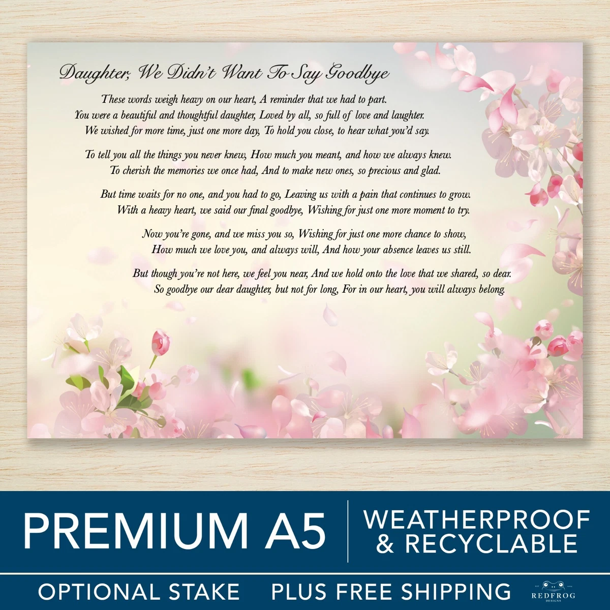 Memorial Card Daughter in Heaven Birthday Grave Card Funeral