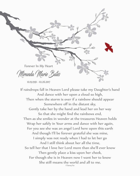DAUGHTER IN HEAVEN Memorial Print in Loving Memory of Angel
