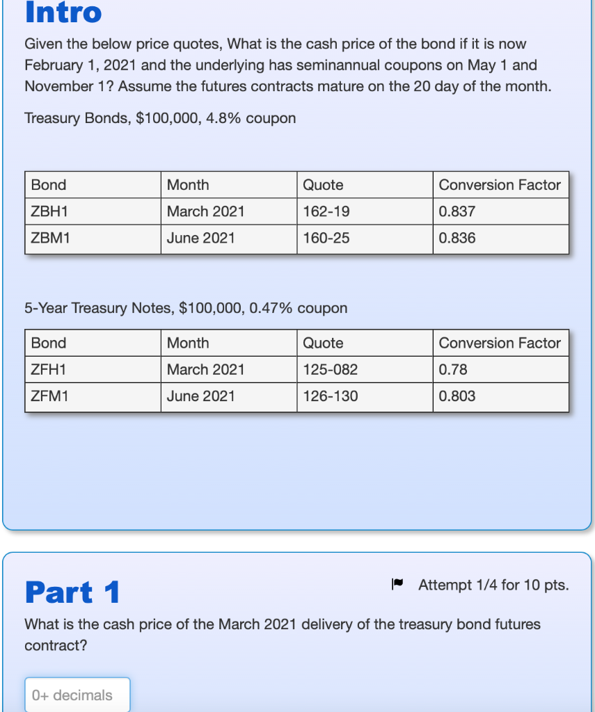 Intro Given the below price quotes, What is the cash | Chegg.com